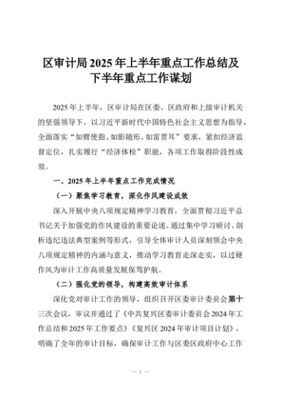 【七哥公文】2025年:区审计局2025年上半年重点工作总结及下半年重点工作谋划+更多免费公文+VX:QiGeGongWen2024