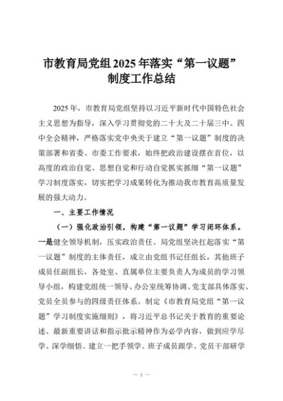 【七哥公文】2025年:市教育局党组2025年落实“第一议题”制度工作总结+更多免费公文+VX:QiGeGongWen2024