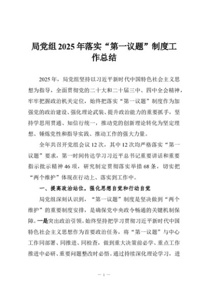 / 【七哥公文】2025年:局党组2025年落实“第一议题”制度工作总结+更多免费公文+VX:QiGeGongWen2024