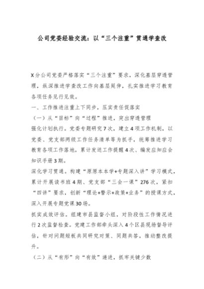 【七哥公文】2025年:公司党委经验交流:以“三个注重”贯通学查改_副本+更多免费公文+VX:QiGeGongWen2024