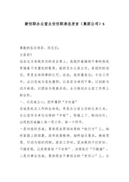 【七哥公文】2025年:新任职办公室主任任职表态发言(集团公司)5_副本+更多免费公文+VX:QiGeGongWen2024