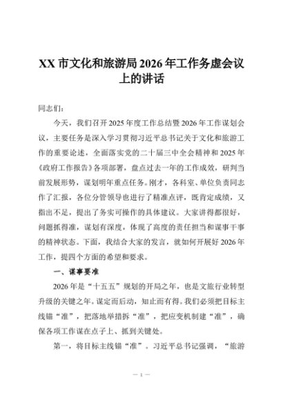 / 【七哥公文】2025年:XX市文化和旅游局2026年工作务虚会议上的讲话+更多免费公文+VX:QiGeGongWen2024