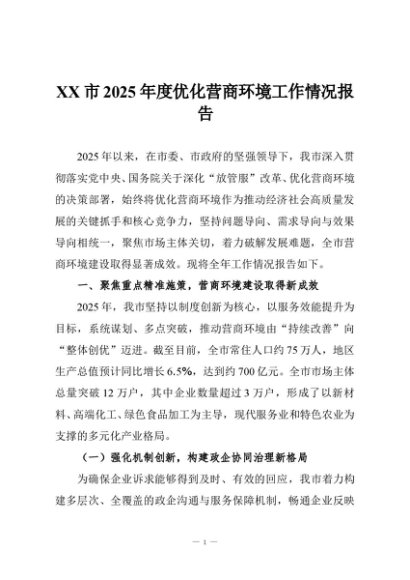 / 【七哥公文】2025年:XX市2025年度优化营商环境工作情况报告+更多免费公文+VX:QiGeGongWen2024