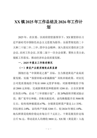 【七哥公文】2025年:XX镇2025年工作总结及2026年工作计划+更多免费公文+VX:QiGeGongWen2024