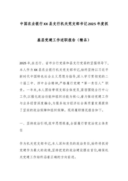 【七哥公文】2025年:中国农业银行XX县支行机关党支部书记2025年度抓基层党建工作述职报告(精品)_副本+更多免费公文+VX:QiGeGongWen2024