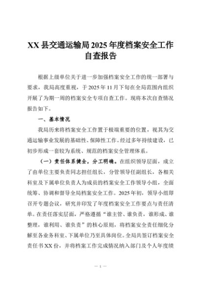 / 【七哥公文】2025年:XX县交通运输局2025年度档案安全工作自查报告+更多免费公文+VX:QiGeGongWen2024