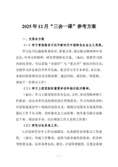 / 【七哥公文】2025年:2025年12月“三会一课”参考方案+更多免费公文+VX:QiGeGongWen2024