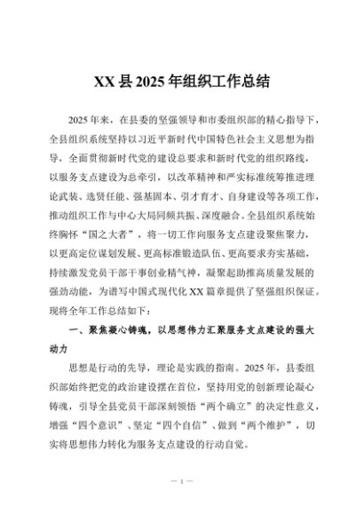 / 【七哥公文】2025年:XX县2025年组织工作总结+更多免费公文+VX:QiGeGongWen2024
