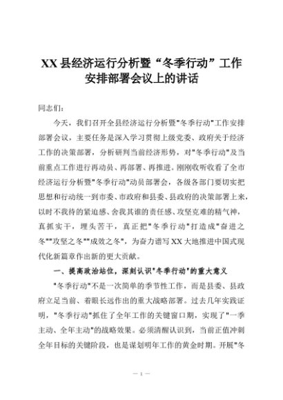 【七哥公文】2025年:XX县经济运行分析暨“冬季行动”工作安排部署会议上的讲话+更多免费公文+VX:QiGeGongWen2024