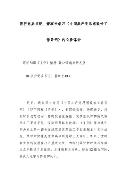 【七哥公文】2025年:银行党委书记、董事长学习《中国共产党思想政治工作条例》的心得体会_副本+更多免费公文+VX:QiGeGongWen2024