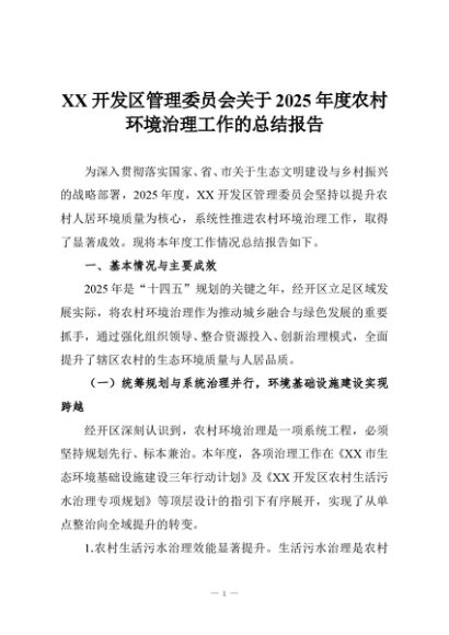 【七哥公文】2025年:XX开发区管理委员会关于2025年度农村环境治理工作的总结报告+更多免费公文+VX:QiGeGongWen2024