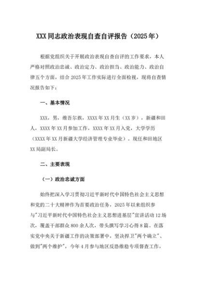 / 【七哥公文】2025年:XXX同志政治表现自查自评报告(2025年)+更多免费公文+VX:QiGeGongWen2024