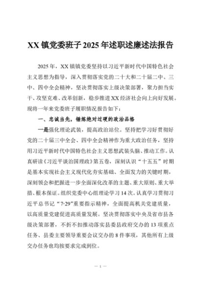 / 【七哥公文】2025年:XX镇党委班子2025年述职述廉述法报告+更多免费公文+VX:QiGeGongWen2024