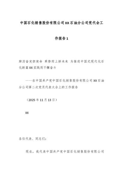 【七哥公文】2025年:中国石化销售股份有限公司XX石油分公司党代会工作报告1_副本+更多免费公文+VX:QiGeGongWen2024