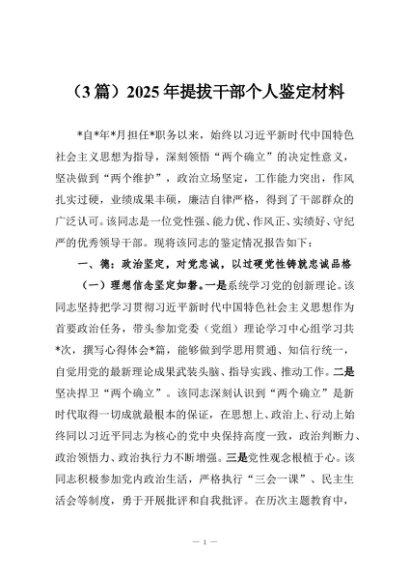 / 【七哥公文】2025年:(3篇)2025年提拔干部个人鉴定材料+更多免费公文+VX:QiGeGongWen2024