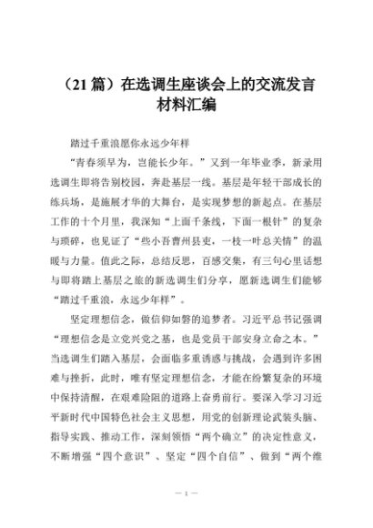 / 【七哥公文】2025年:(21篇)在选调生座谈会上的交流发言材料汇编+更多免费公文+VX:QiGeGongWen2024