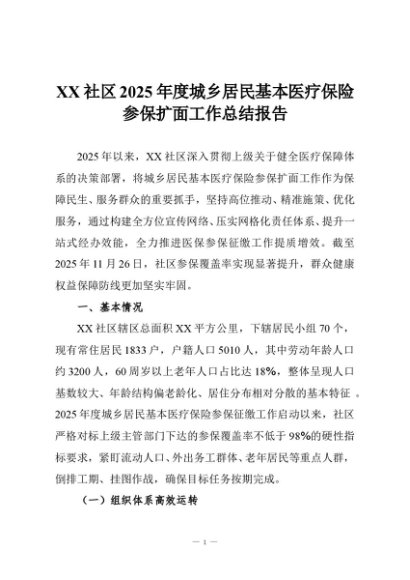 【七哥公文】2025年:XX社区2025年度城乡居民基本医疗保险参保扩面工作总结报告+更多免费公文+VX:QiGeGongWen2024