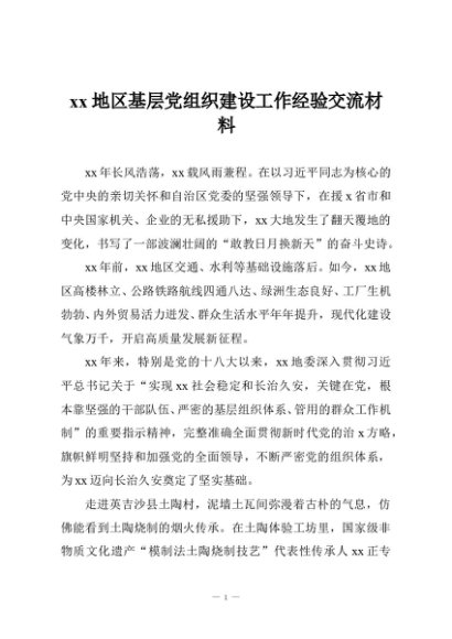 / 【七哥公文】2025年:xx地区基层党组织建设工作经验交流材料+更多免费公文+VX:QiGeGongWen2024