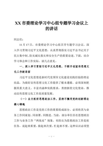 / 【七哥公文】2025年:XX市委理论学习中心组专题学习会议上的讲话+更多免费公文+VX:QiGeGongWen2024