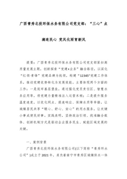 【七哥公文】2025年:广西青秀北投环保水务有限公司党支部:“三心”点滴连民心 党风化雨育新风_副本+更多免费公文+VX:QiGeGongWen2024