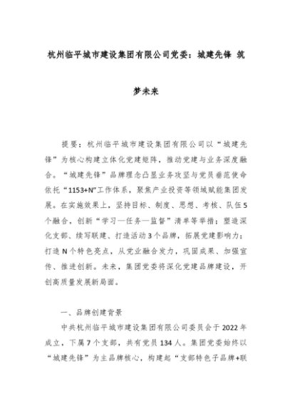 【七哥公文】2025年:杭州临平城市建设集团有限公司党委:城建先锋 筑梦未来_副本+更多免费公文+VX:QiGeGongWen2024