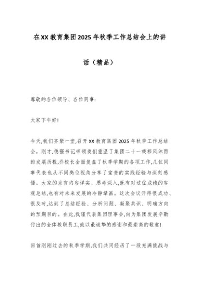 【七哥公文】2025年:在XX教育集团2025年秋季工作总结会上的讲话(精品)_副本+更多免费公文+VX:QiGeGongWen2024