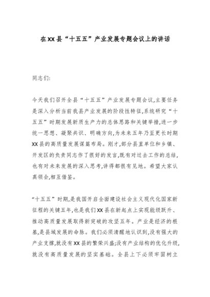 【七哥公文】2025年:在XX县“十五五”产业发展专题会议上的讲话_副本+更多免费公文+VX:QiGeGongWen2024