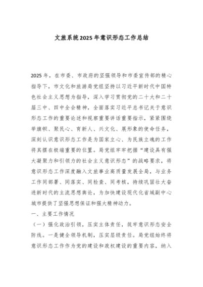 / 【七哥公文】2025年:文旅系统2025年意识形态工作总结_副本+更多免费公文+VX:QiGeGongWen2024