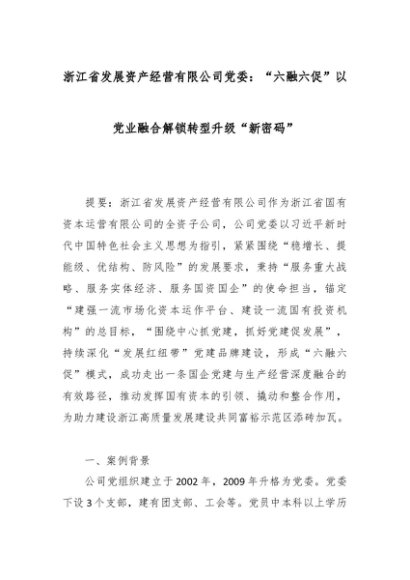 【七哥公文】2025年:浙江省发展资产经营有限公司党委:“六融六促”以党业融合解锁转型升级“新密码”_副本+更多免费公文+VX:QiGeGongWen2024