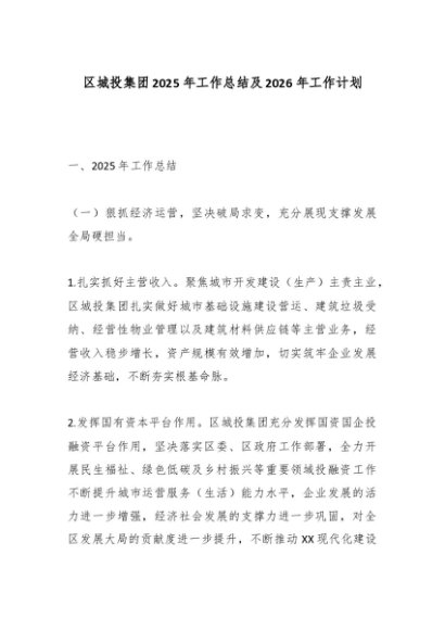 【七哥公文】2025年:区城投集团2025年工作总结及2026年工作计划_副本+更多免费公文+VX:QiGeGongWen2024