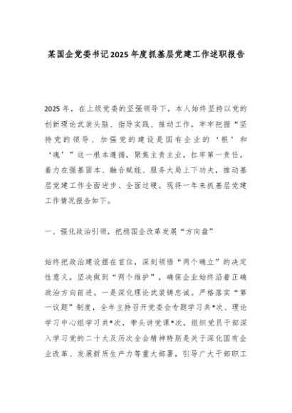 【七哥公文】2025年:某国企党委书记2025年度抓基层党建工作述职报告_副本+更多免费公文+VX:QiGeGongWen2024