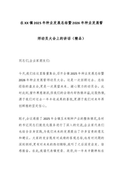 【七哥公文】2025年:在XX镇2025年种业发展总结暨2026年种业发展誓师动员大会上的讲话(精品)_副本+更多免费公文+VX:QiGeGongWen2024