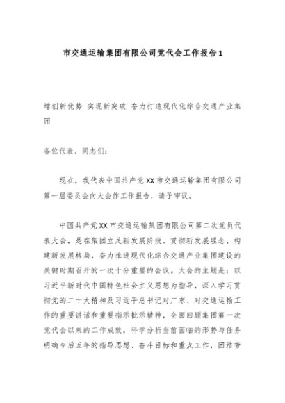 / 【七哥公文】2025年:市交通运输集团有限公司党代会工作报告_副本+更多免费公文+VX:QiGeGongWen2024
