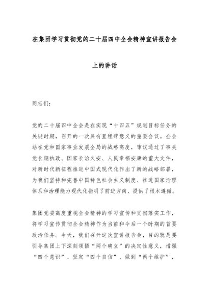 【七哥公文】2025年:在集团学习贯彻党的二十届四中全会精神宣讲报告会上的讲话_副本+更多免费公文+VX:QiGeGongWen2024