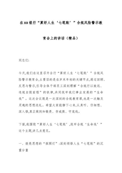 【七哥公文】2025年:在XX银行“算好人生‘七笔账’”合规风险警示教育会上的讲话(精品)_副本+更多免费公文+VX:QiGeGongWen2024