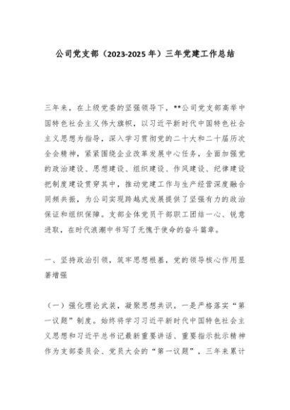 【七哥公文】2025年:公司党支部(2023-2025年)三年党建工作总结_副本+更多免费公文+VX:QiGeGongWen2024