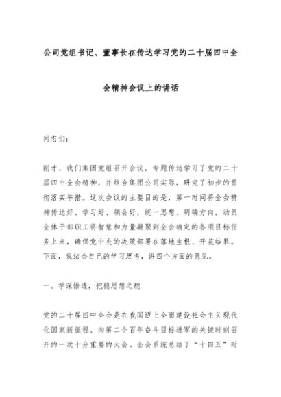 【七哥公文】2025年:公司党组书记、董事长在传达学习党的二十届四中全会精神会议上的讲话_副本+更多免费公文+VX:QiGeGongWen2024