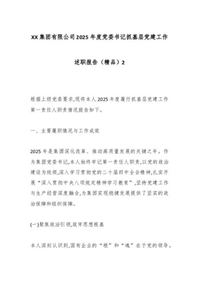 【七哥公文】2025年:XX集团有限公司2025年度党委书记抓基层党建工作述职报告(精品)2_副本+更多免费公文+VX:QiGeGongWen2024