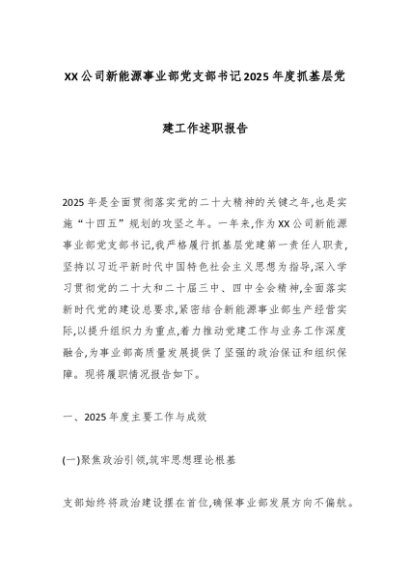 【七哥公文】2025年:XX公司新能源事业部党支部书记2025年度抓基层党建工作述职报告_副本+更多免费公文+VX:QiGeGongWen2024