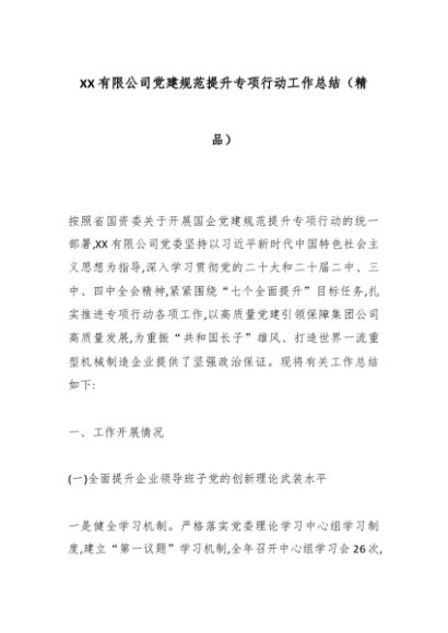 【七哥公文】2025年:XX有限公司党建规范提升专项行动工作总结(精品)_副本+更多免费公文+VX:QiGeGongWen2024