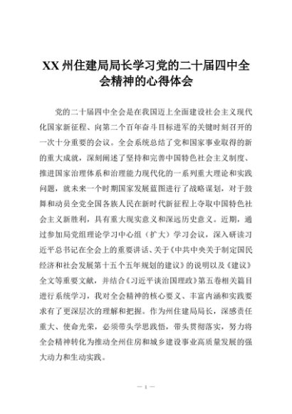 【七哥公文】2025年:XX州住建局局长学习党的二十届四中全会精神的心得体会+更多免费公文+VX:QiGeGongWen2024
