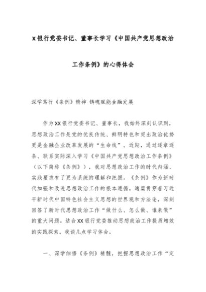 【七哥公文】2025年:X银行党委书记、董事长学习《中国共产党思想政治工作条例》的心得体会_副本+更多免费公文+VX:QiGeGongWen2024