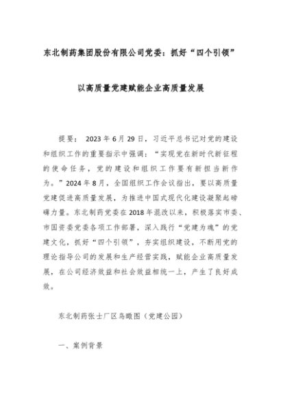 【七哥公文】2025年:东北制药集团股份有限公司党委:抓好“四个引领” 以高质量党建赋能企业高质量发展_副本+更多免费公文+VX:QiGeGongWen2024
