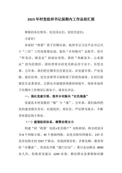 / 【七哥公文】2025年:2025年村党组织书记届期内工作总结汇报_副本+更多免费公文+VX:QiGeGongWen2024