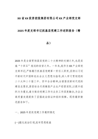 【七哥公文】2025年:XX省XX投资控股集团有限公司XX产业部党支部2025年度支部书记抓基层党建工作述职报告(精品)_副本+更多免费公文+VX:QiGeGongWen2024