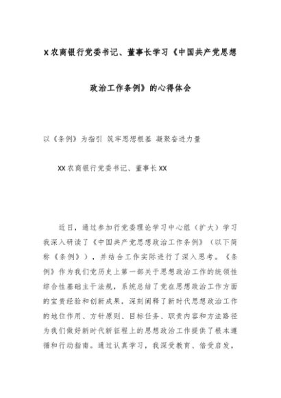 【七哥公文】2025年:X农商银行党委书记、董事长学习《中国共产党思想政治工作条例》的心得体会_副本+更多免费公文+VX:QiGeGongWen2024