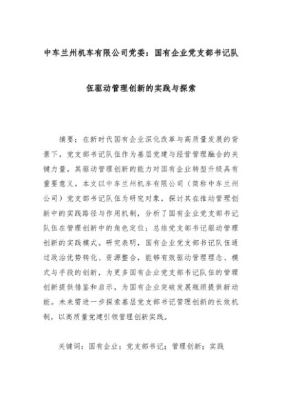 【七哥公文】2025年:中车兰州机车有限公司党委:国有企业党支部书记队伍驱动管理创新的实践与探索_副本+更多免费公文+VX:QiGeGongWen2024