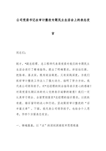 【七哥公文】2025年:公司党委书记在审计整改专题民主生活会上的表态发言_副本+更多免费公文+VX:QiGeGongWen2024