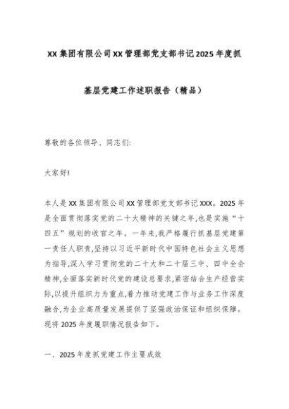 【七哥公文】2025年:XX集团有限公司XX管理部党支部书记2025年度抓基层党建工作述职报告(精品)_副本+更多免费公文+VX:QiGeGongWen2024