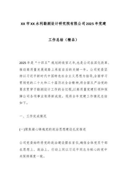 【七哥公文】2025年:XX市XX水利勘测设计研究院有限公司2025年党建工作总结(精品)_副本+更多免费公文+VX:QiGeGongWen2024